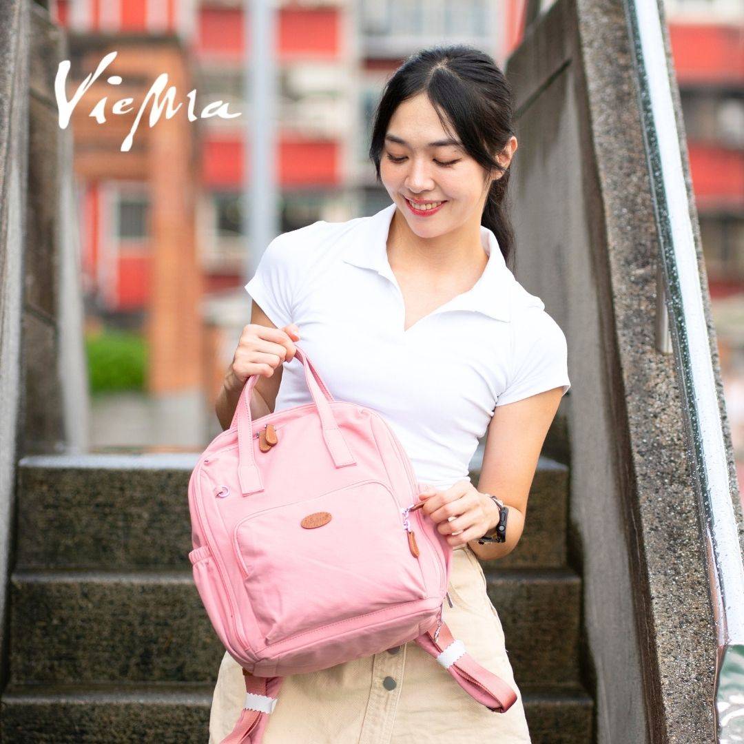日系文青通勤多功能後背包書包-5用-櫻花粉(2904)